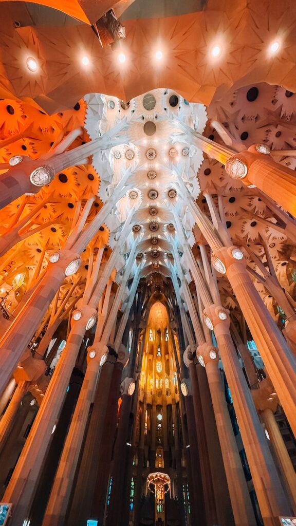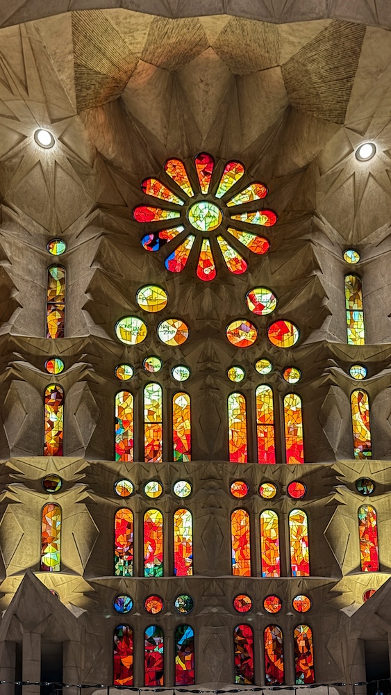 Seara am dedicat-o simbolului Barcelonei, catedrala Sagrada Familia. Deși inițial plănuisem să intrăm pe rând înăuntru, am profitat că Noah se simțea foarte bine și am intrat toți 3 și ne-am bucurat de interiorul absolut spectaculos, cu vitraliile și coloanele pentru care Antonio Gaudi a devenit celebru. Noah s-a simțit atât de bine încât a luat la pas (în genunchi) toată catedrala spre amuzamentul celorlalți vizitatori. Nici astăzi catedrala nu este complet finalizată, însă se preconizează că anul viitor să se încheie în proporții destul de mari construcția turnurilor.