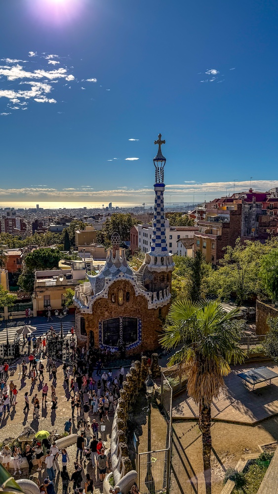 A doua zi a început foarte matinal pentru că Noah încă rămăsese pe fusul orar de România și dacă acasă se trezea în jur de ora 6 aici s-a trezit bineînțeles, la 5. După micul dejun copios de la hotel ne-am grăbit să ajungem în Park Guel pentru că aveam programare pentru ora 10 și eram un pic contra timp cu somnul de prânz a lui Noah. Astrele însă au decis altfel: Noah a adormit exact când am coborât din autobuz în fața parcului însă asta a fost de fapt foarte bine pentru că ne-am început plimbarea prin parc cu el dormind iar ulterior, după ce s-a trezit am putut să stăm fără să mai fim presați pentru că băiatul nostru era odihnit și vesel. Parcul era evident, foarte aglomerat, dar fiind foarte aerisit și vremea extrem de plăcută, ne-am bucurat în voie.