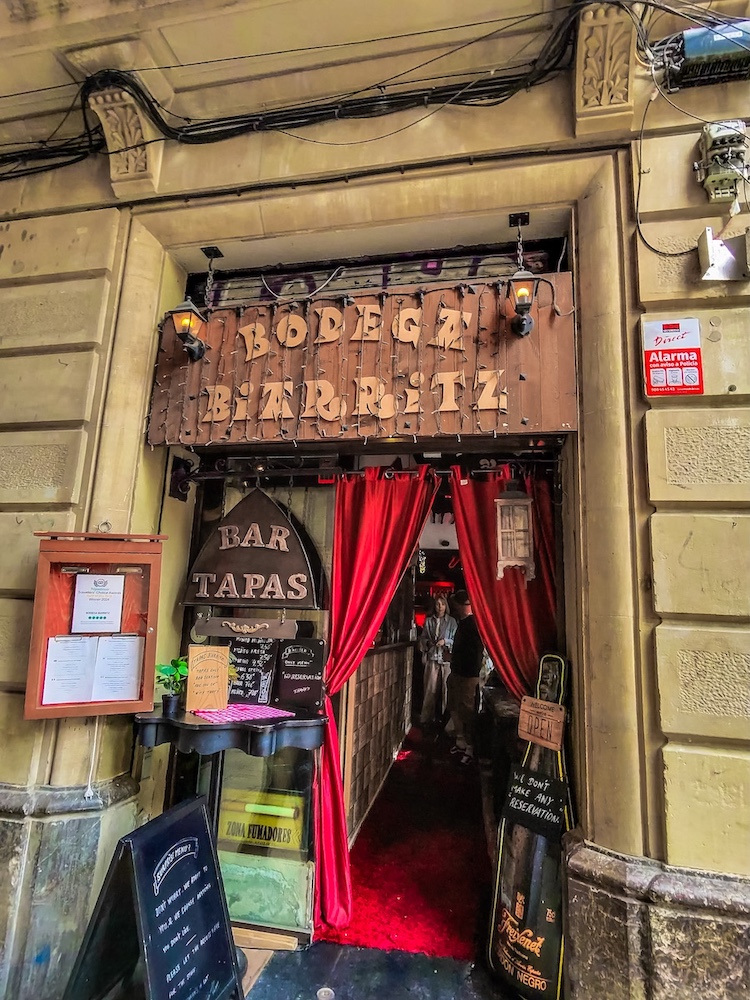 Imediat după ce ne-am cazat am pornit spre un bar pe care l-am găsit întâmplător menționat undeva (nu-mi aduc aminte exact unde) însă m-a intrigat ideea că serveau meniuri tapas surpriză iar pe Google Maps aveau review-uri chiar bune. Bodega Biarritz ne-a surprins chiar foarte plăcut, am ales meniul surpriză la 55 euro/ 2 persoane la care am adăugat și câte un pahar de Sangria și unul de Cava. Am primit un platou de aperitive cu brânză Manchego, mezeluri iberice (șuncă și chorizo) și pâine cu roșii. Apoi au venit 8 boluri de tapas cu specialități de toate felurile, de la pui la fructe de mare și de la cartofi gratinați la pește. Un adevărat deliciu culinar. Pentru final am primit și 2 shot-uri de ceva digestiv iar totalul a fost unul rezonabil – 66 euro. Barul este situat chiar în cartierul Gotic așa că am profitat de ocazie pentru a vizita un pic și străduțele din jur.