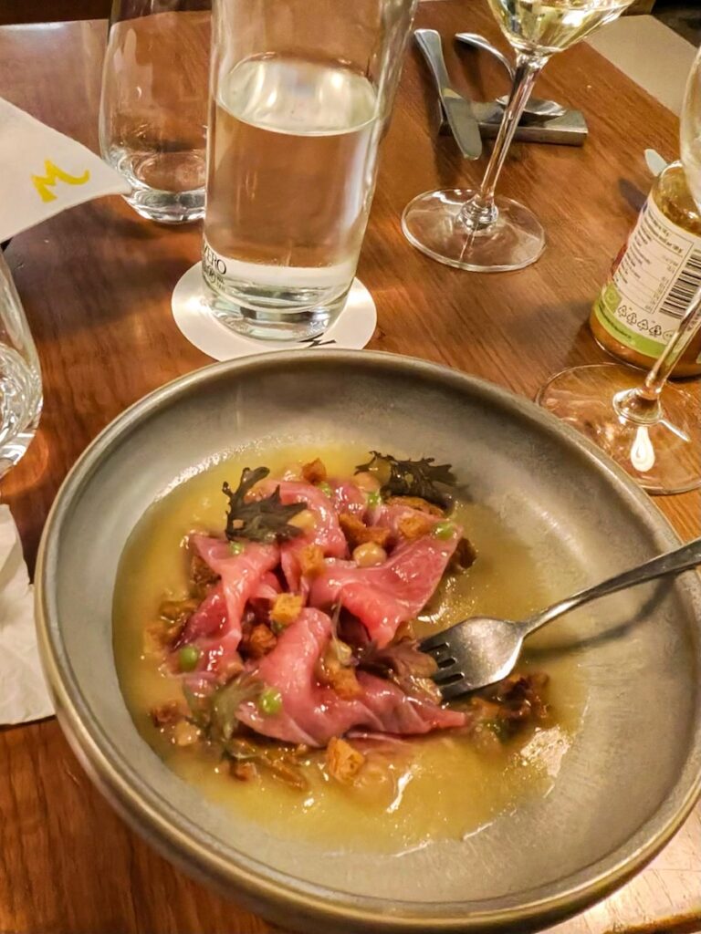 Pentru prânz am coborât înapoi în oraș și ne-am îndreptat spre un local foarte cochet și mai puțin turistic dar cu niște preparate atent selecționate de chef Victor Rodenas și echipa sa. Maleducat este un local cu stil și atenție la detalii, dar fără pretenții de fine dining deși preparatele arată și se simt așa. Aici am gustat o porție „to share” de burtă de ton, iar separat o porție de tartar de vită și sos chipotle eu, iar Delia o porție de vită cu ciuperci și sos brun. Împreună cu un pahar de vin alb, nota a fost 100 euro, un pic mai piperată decât în celelalte locații, însă a meritat și ultimul cent plătit pentru cât de gustoase au fost preparatele.