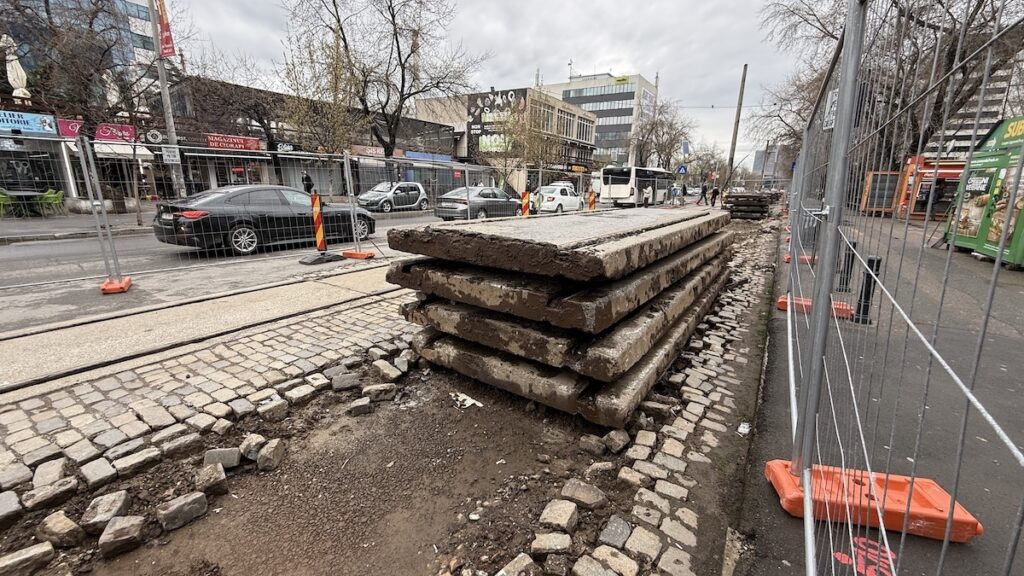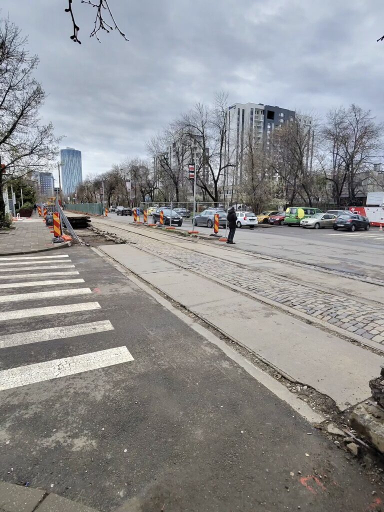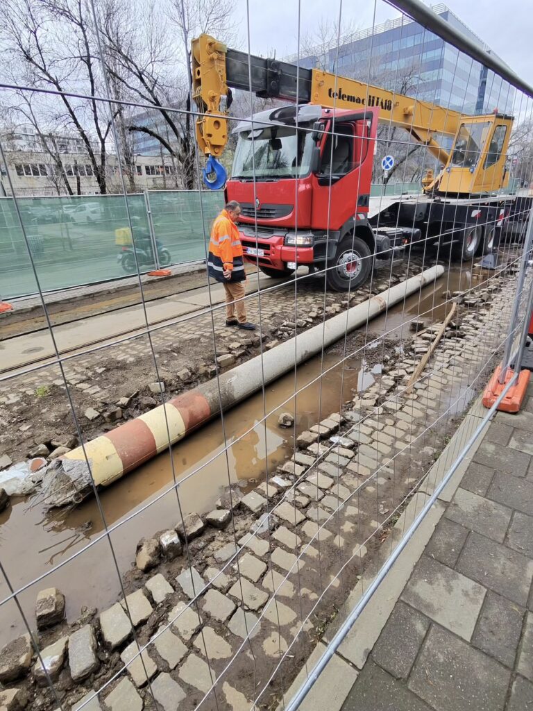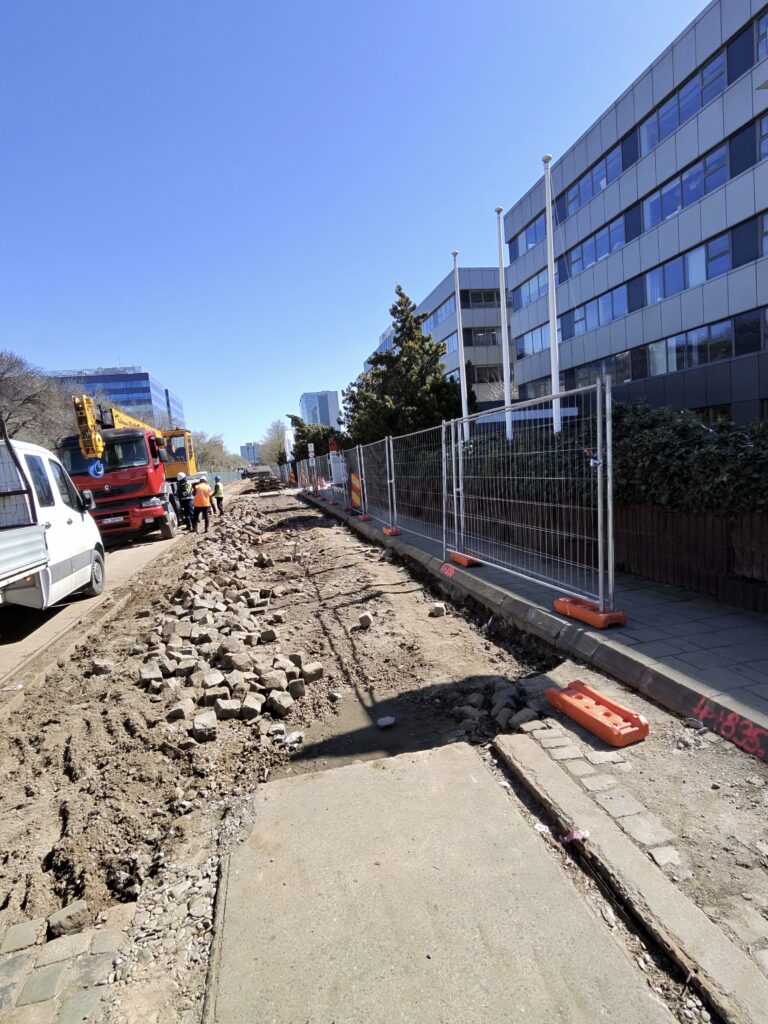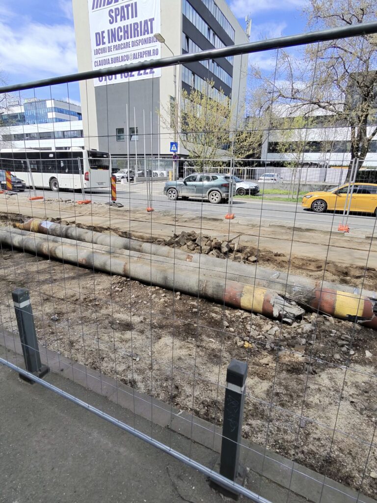Așa cum mă așteptam, a început debarasarea plăcilor de dintre șine și a pietrei cubice. De asemenea, și stâlpii au fost puși la pământ. Ritmul pare ,cel puțin deocamdată, bun.