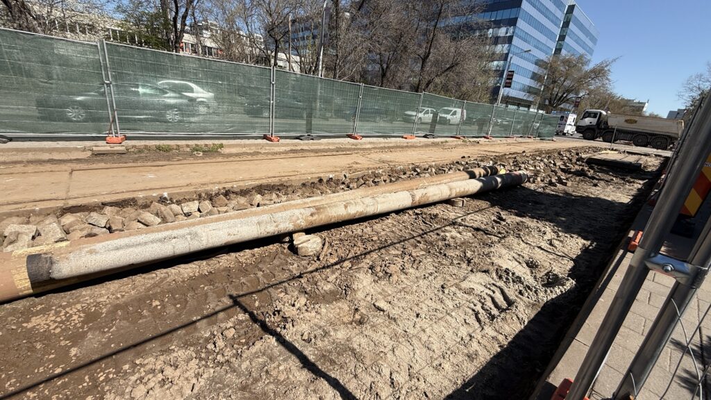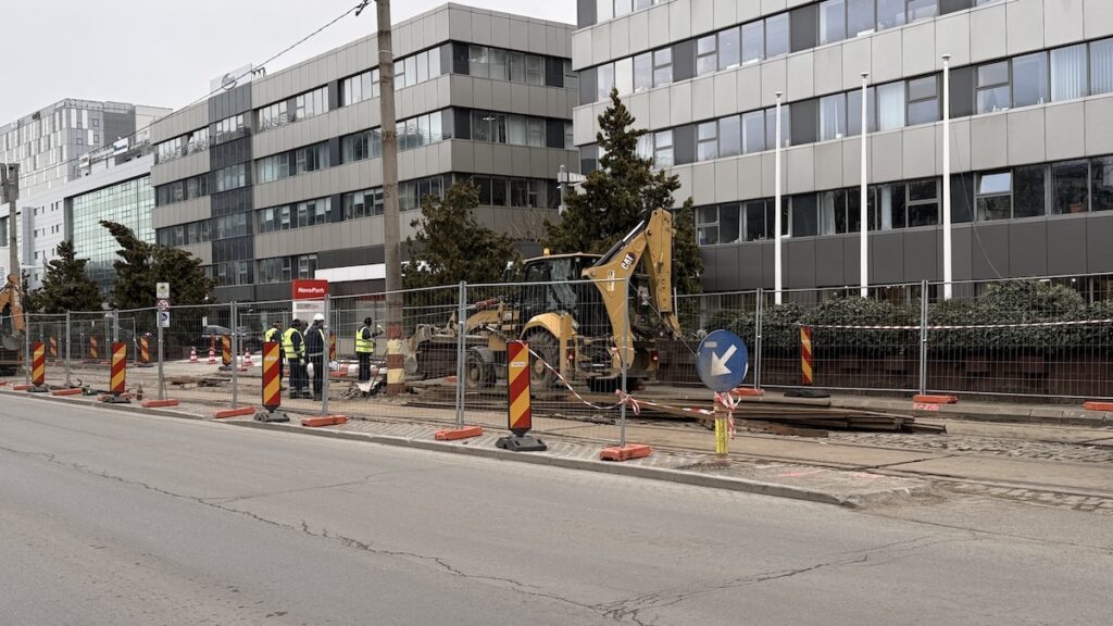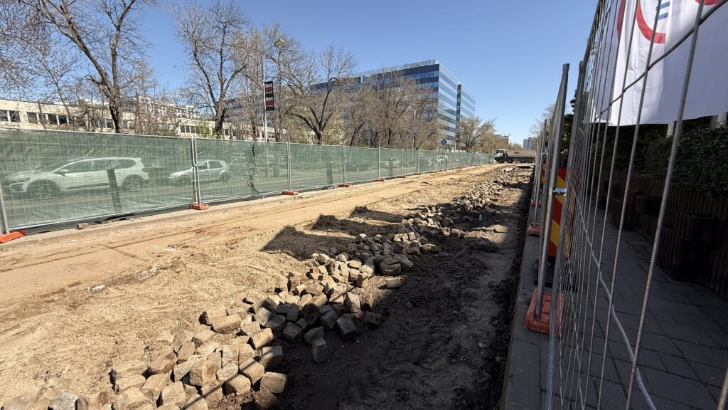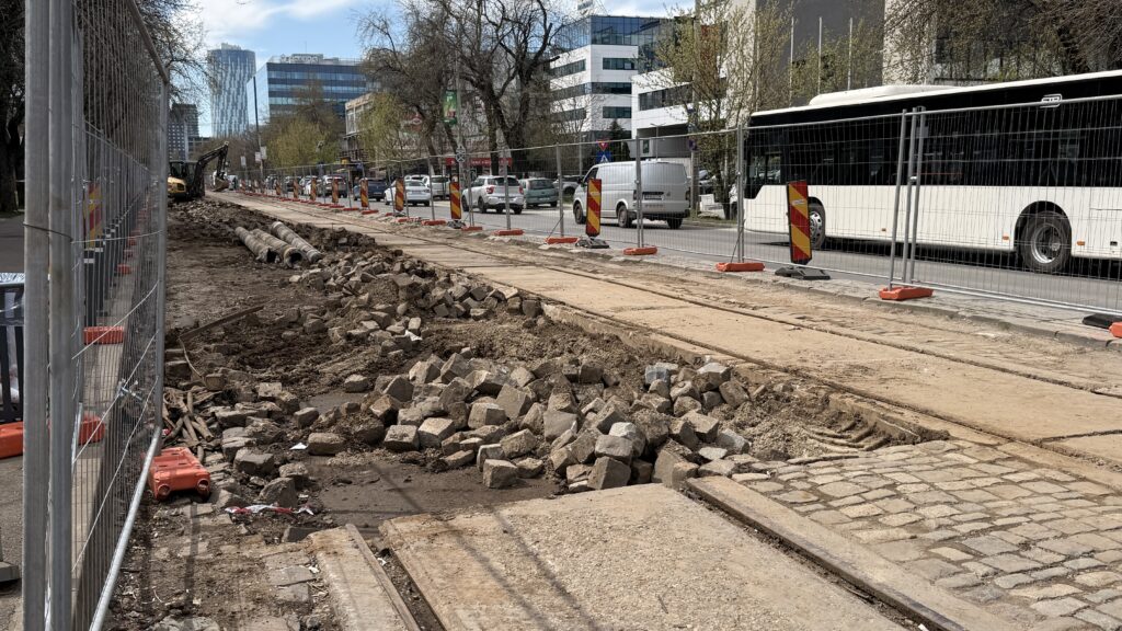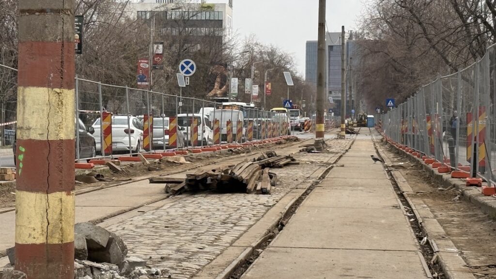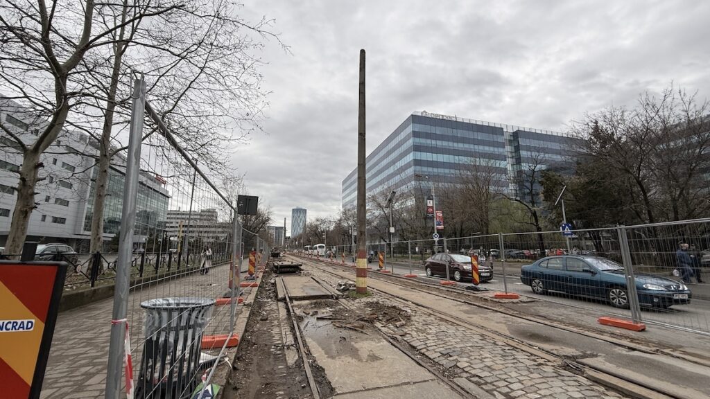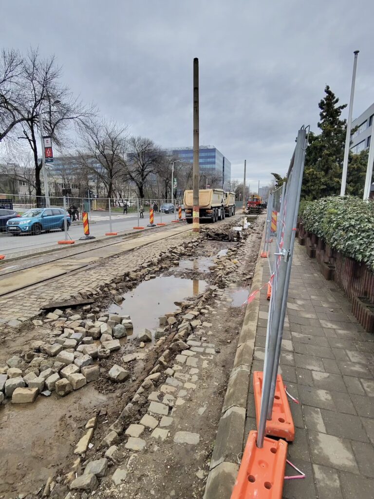 Așa cum mă așteptam, a început debarasarea plăcilor de dintre șine și a pietrei cubice. De asemenea, și stâlpii au fost puși la pământ. Ritmul pare ,cel puțin deocamdată, bun.