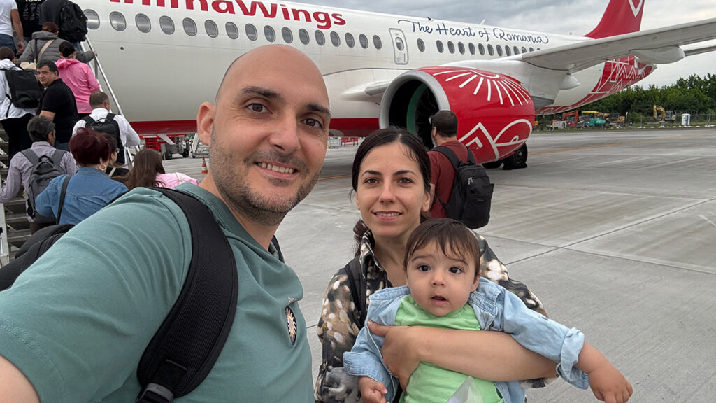 Călătoria noastră cu avionul a început cu un zbor scurt de doar 50 de minute, pe parcursul căruia Noah a dormit buștean, cel mai probabil datorită zgomotului de fundal pe care el l-a perceput ca white noise-ul cu ajutorul căruia doarme acasă. Am ales să zburăm cu Animawings, companie cu care nu mai zburasem dar care ne-a surprins plăcut.