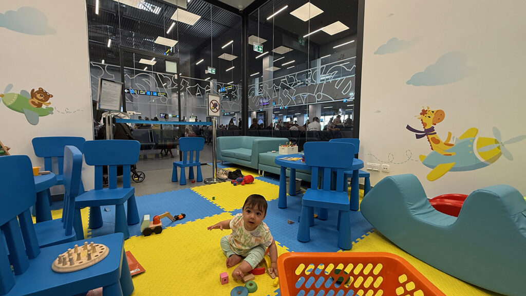 Cum Noah deja devenise puțin agitat, salvarea noastră a venit de la sala de joaca amenajată în interiorul aeroportului, unde Noah s-a simțit foarte bine, alături de jucării și departe de agitație. Intre timp a sosit și avionul nostru și am plecat înapoi spre casa.